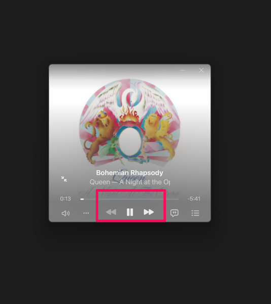 Jos haluat muuttaa Windows 11: n Apple Music Mini -soitin oletusnäkymää napsauttamalla Mini Player -käyttöliittymän nykyisen kappaleen albumin kannetta. Tämän tekeminen avaa laajennetun näkymän Apple Music Mini Player -sovelluksesta, joka esittelee täysin kappaleiden albumin kansi.