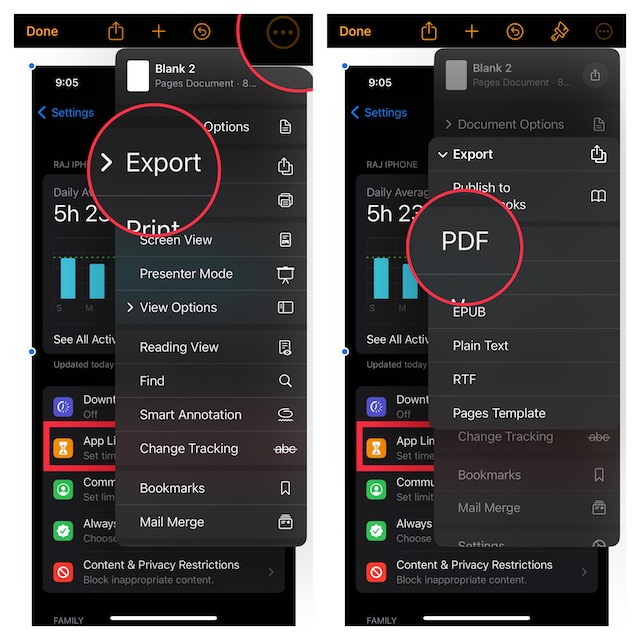 - Seuraavaksi napautakolminkertainen kuvakeja valitseViedäavattavassa valikossa.