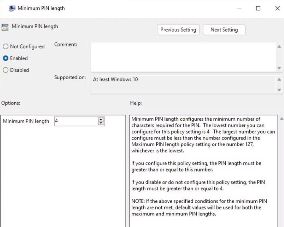 Jos et halua käyttää Windowsin rekisteriä, voit yrittää pidentää PIN-koodia Windows 11/10:ssä ryhmäkäytäntöeditorin avulla.