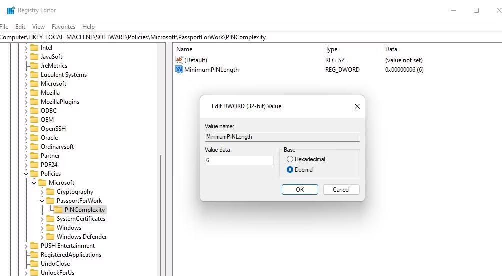 Windowsin Asetukset-sovelluksessa ei ole mahdollisuutta pidentää PIN-koodin pituutta. Tässä tapauksessa meidän on tehtävä joitain muutoksia Windowsin rekisteriin ja luotava uusi avain, jonka avulla voimme luoda oman valitsemamme PIN-koodin. Tässä on mitä sinun tulee tehdä: