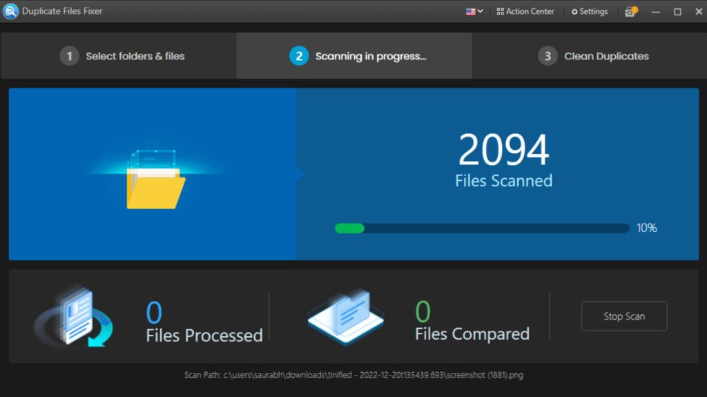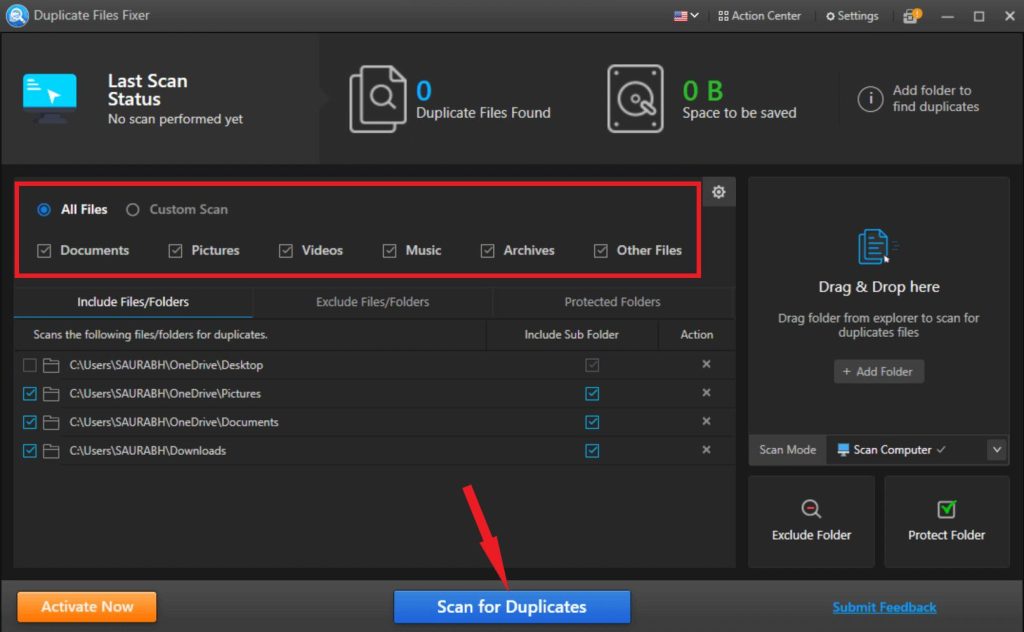 Vaihe 2:Siivousprosessin aloittamiseksi avaa vain kaksoiskappaleiden korjaus (DFF) ja lisää skannattava tiedostot/ kansio ja napsautaSkannaa kaksoiskappaleet.