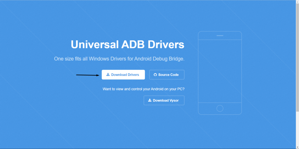 1.NapsautatässäSiirry Universal ADB Drivers -sivustolle ja napsauta sittenLataa ajurit-painiketta.