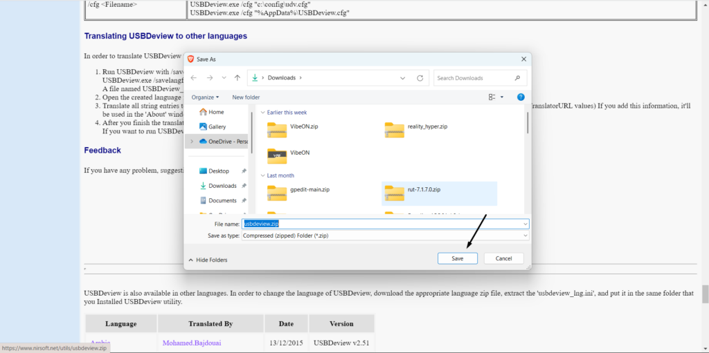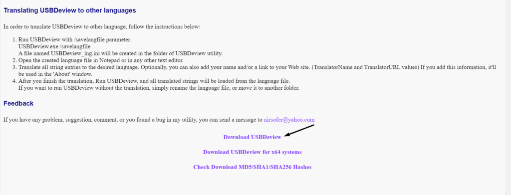 1.NapsautatässämennäUSBDeviewverkkosivusto ja napsauta kyseisellä sivullaLataa USBDeview.