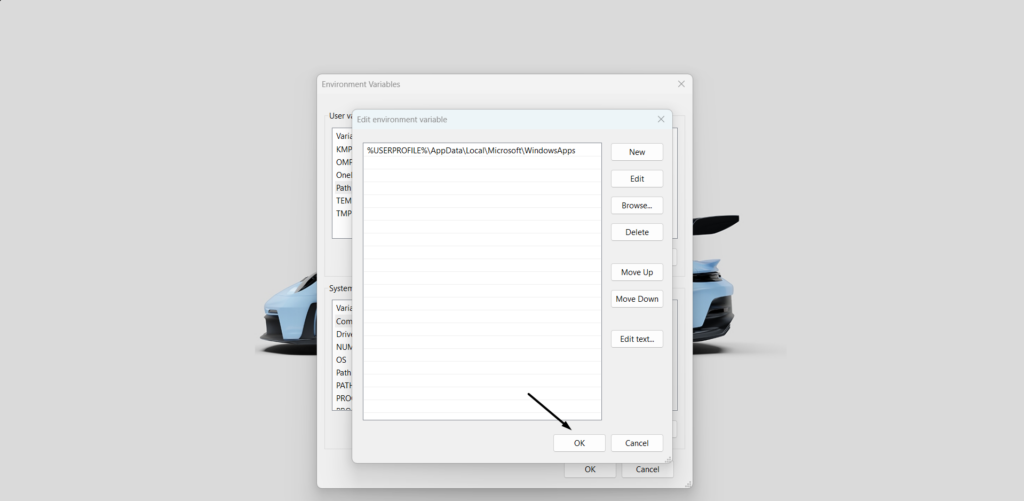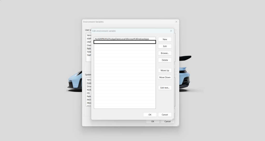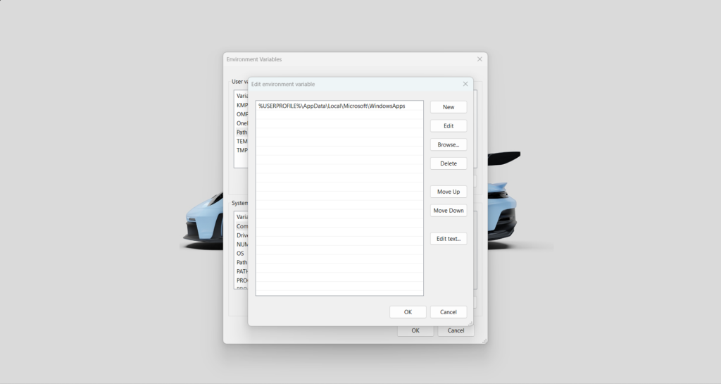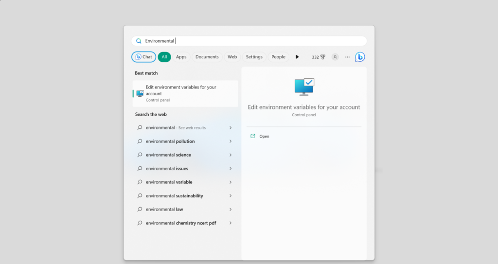 2.TyyppiYmpäristösiinä ja valitseMuokkaa järjestelmäympäristömuuttujiahakutuloksista.