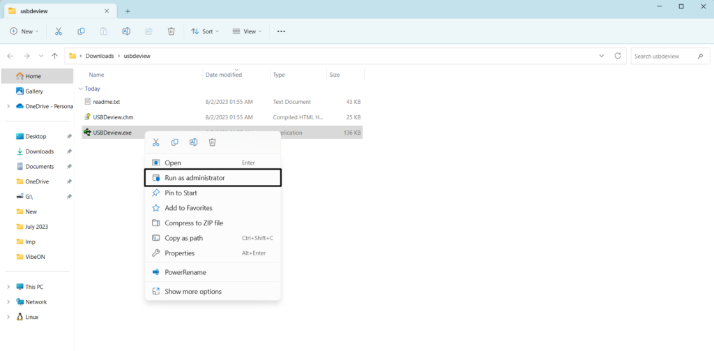 4.Kun olet valmis, avaa purettu kansio, ja napsauta hiiren kakkospainikkeellaUSBDeview.exetiedostoa saadaksesi valikon.