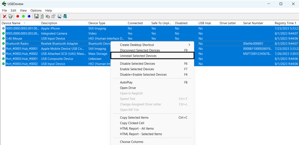 8.Lopuksi, valitsePoista valitut laitteetkontekstivalikosta poistaaksesi ne kaikki.