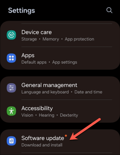 - NapauttaaJärjestelmä-JärjestelmäpäivitystaiOhjelmistopäivitys. Vaihtoehtoisesti Samsung -laitteissa napautaOhjelmistopäivityspääasiassaAsetuksetvalikko.