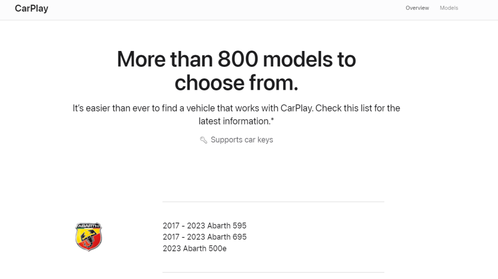Jos haluat tarkistaa, onko iPhone yhteensopiva carplay: n kanssa, menevirallinen Apple -verkkosivustoJa etsi luettelo yhteensopivista iPhone -malleista. Jos laitettasi ei ole lueteltu, valitettavasti se ei välttämättä tue CarPlay -toimintoja.