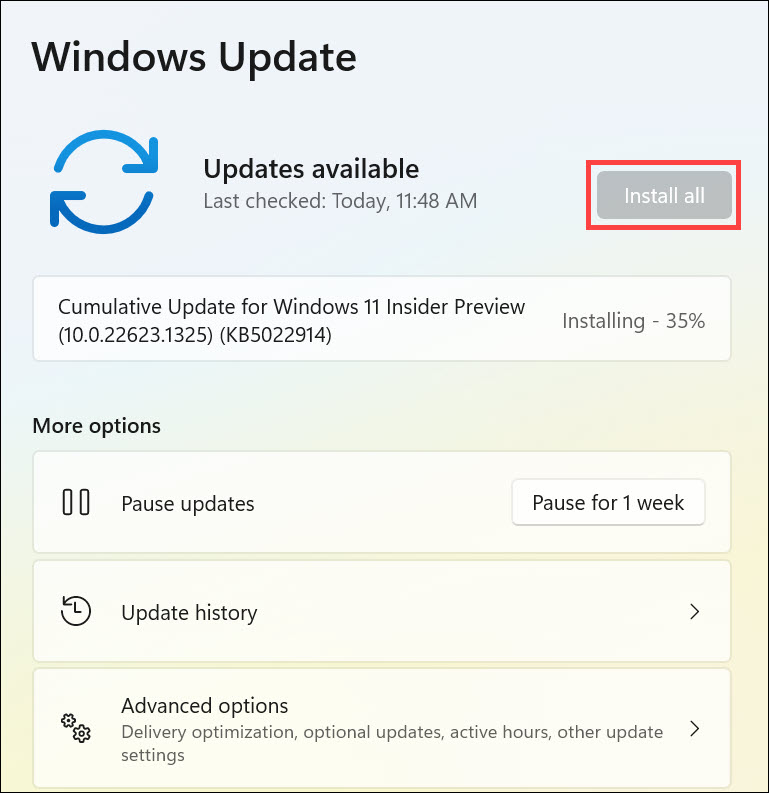 4.Jos päivitykset löytyvät, napsautaAsentaa kaikkiPainike ladata ja asentaa ne.