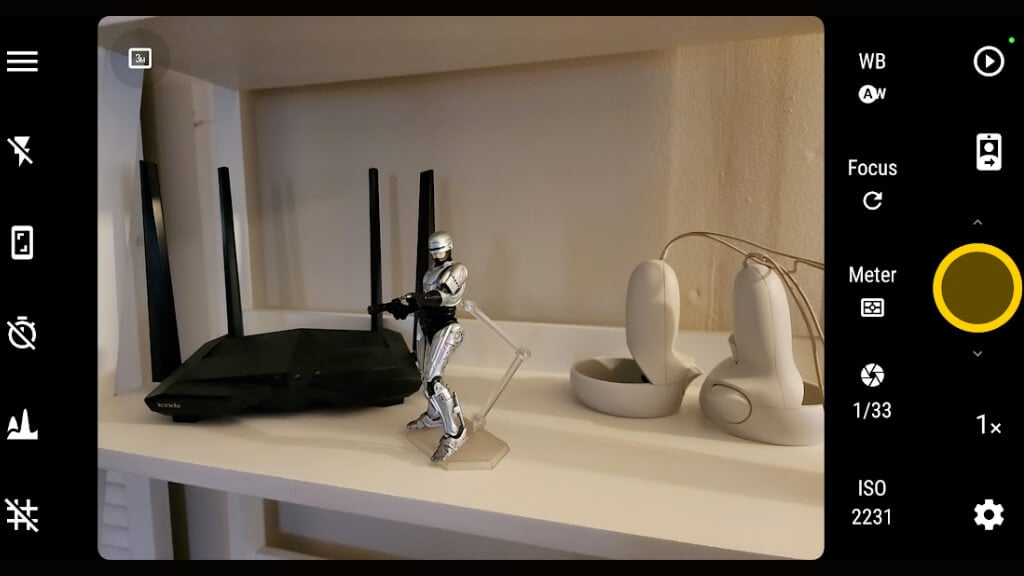 Joidenkin Android -puhelinkamerasovellusten mukana tulee manuaalinen tai ”Pro” -tila, mikä tekee siitä enemmän kuin DSLR -kameran käyttäminen. Esimerkiksi Samsung Galaxy -puhelimessa voit valita Pro-tilan ja kameran asetukset manuaalisesti näytön tarkennuspyörän avulla.