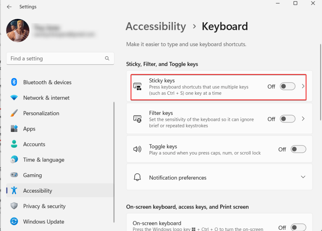 Ratkaisu nro 5 - Ota tahmea näppäimet käyttöön
