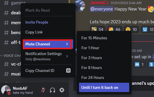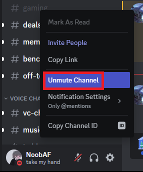 Tämä on tämän luettelon viimeinen menetelmä, jota Discord -käyttäjät ympäri maailmaa ehdottavat viestien korjaamista, jotka eivät lataa virheitä sovellukseen. Kun mykistät kanavaa, se keskeyttää kaikki palvelimen ilmoitukset ja kun myyt sitä, ilmoituksia jatketaan, ja kehottaa sovellusta lataamaan käyttäjän uusimmat viestit.