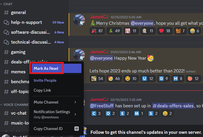 Mark-AS-lukema on menetelmä, jolla monet käyttäjät ovat ratkaisseet viestit, jotka eivät lataa ongelmia Discord-sovelluksessa. Merkitse lukema on vaihtoehto Discord -sovelluksessa. Näin voit käyttää sitä ongelman ratkaisemiseen: