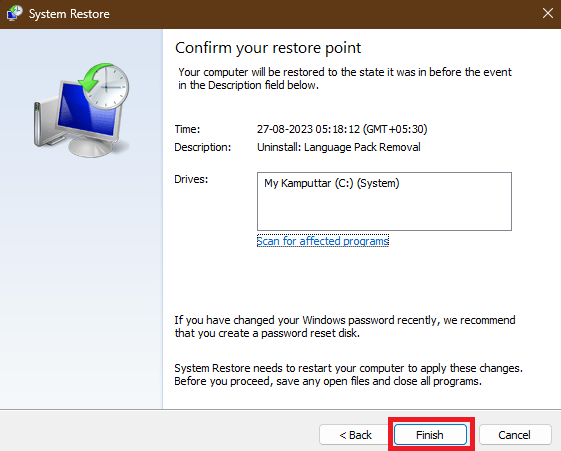Järjestelmän palautus Windows 11: ssä voi mahdollisesti korjata dynaamisen lukitustoiminnon. On kuitenkin tärkeää käyttää järjestelmän palauttamista varoen, koska se voi palauttaa tietokoneesi aiempaan tilaan ja voi johtaa tietojen menetyksiin tai tahattomiin seurauksiin.