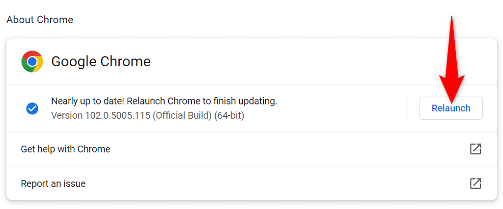 Selaimen päivittäminen on paras tapa korjata tällaiset ongelmat. Google työntää usein virhekorjauksia ja muita Chromen parannuksia, ja näiden päivitysten asentaminen voi ratkaista monia selaimesi ongelmia.