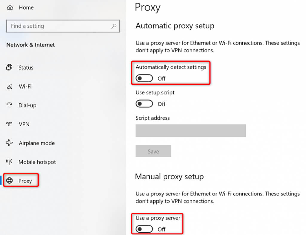 - ValitaVälityspalvelinvasemmalla olevasta sivupalkista käyttääksesi välityspalvelimen asetuksia.