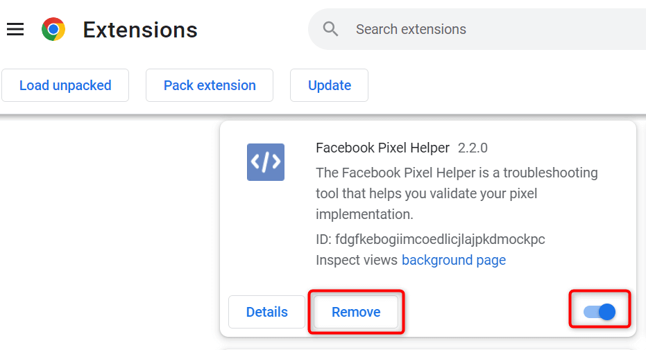 - Voit poistaa ongelmallisen laajennuksen valitsemallaPoistaa.