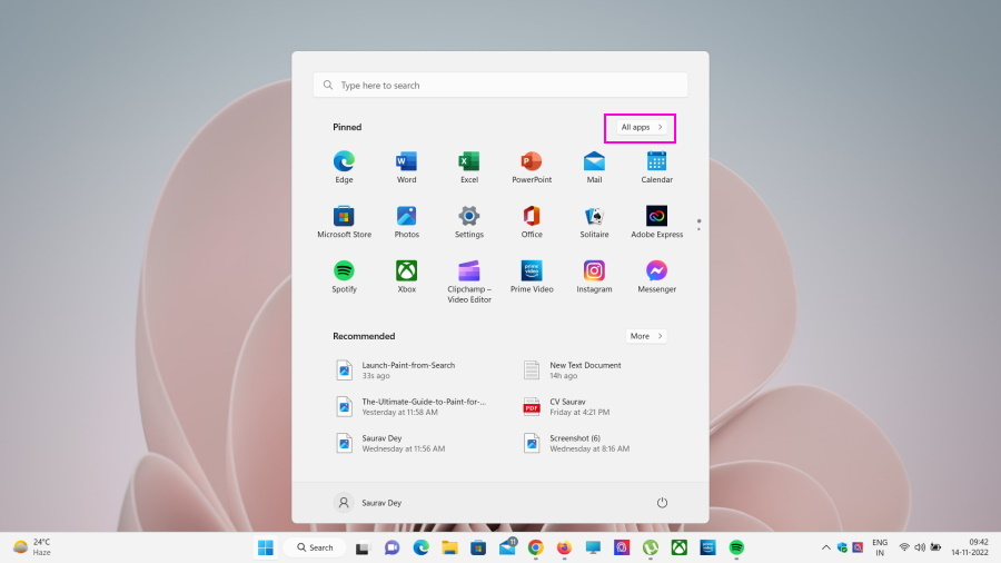 1.KäynnistäKäynnistä-valikkonapsauttamallaWindows-kuvakeWindows-tietokoneesi tehtäväpalkissa.