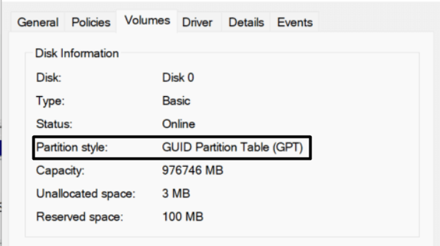 4.Tarkista lopuksi, käyttääkö tallennusasemasi GPT- tai MBR-osiojärjestelmää. Jos se käyttää MBR-osiomallia, muunna se GPT-osiomalliksi laajentaaksesi sitä. Voit tarkistaaliitteenä oleva Microsoftin opetusohjelmatietääksesi saman vaiheet.