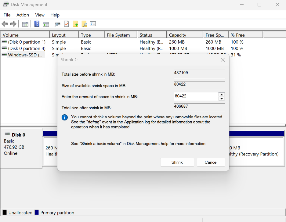 Miksi en voi laajentaa C-asemaa Windows 11:ssä?