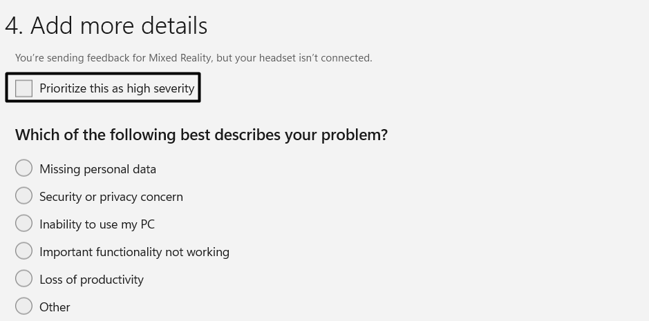 5.TarkistaPriorisoi tämä vakavaksija valitse ongelmaasi vastaava vaihtoehto.
