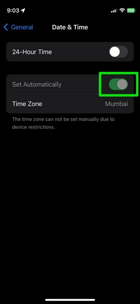 Tällä tavoin iPhone havaitsee alueellisesti alueen ja aikavyöhykkeen ja asettaa päivämäärän ja ajan vastaavasti. Tämän pitäisi ratkaista FaceTime, joka ei toimi ongelma iPhonessa.