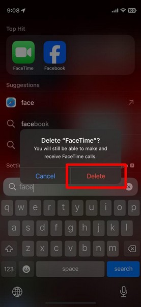 Jos FaceTime-työkysymys jatkuu edellä mainittujen korjausten kokeilemisen jälkeen, voit yrittää poistaa sovelluksen asennuksen ja asentaa sen laitteeseesi uudelleen. Tämä pääsee eroon olemassa olevasta sovellusvälimuistista ja puhdistaa sovellusmuistin palvelun nollaamiseksi, puolestaan ratkaista FaceTime, joka ei toimi iPhonessa.