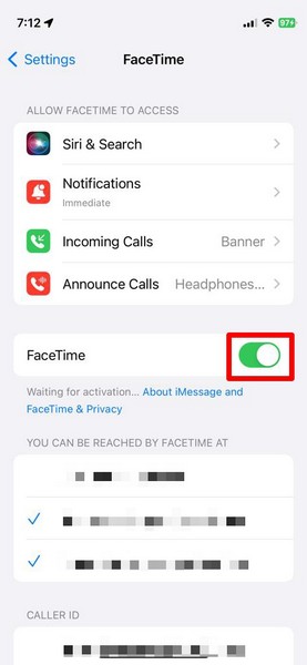 3. Poista käytöstä ja uudelleen käytettävä faceTime iPhonellasi