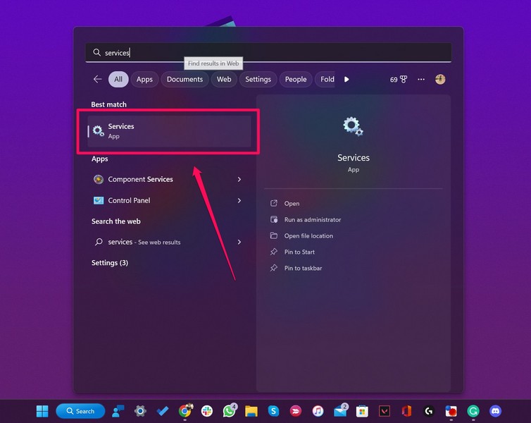 1.Avata Windows + S Windows -haku ja hakuPalvelut.