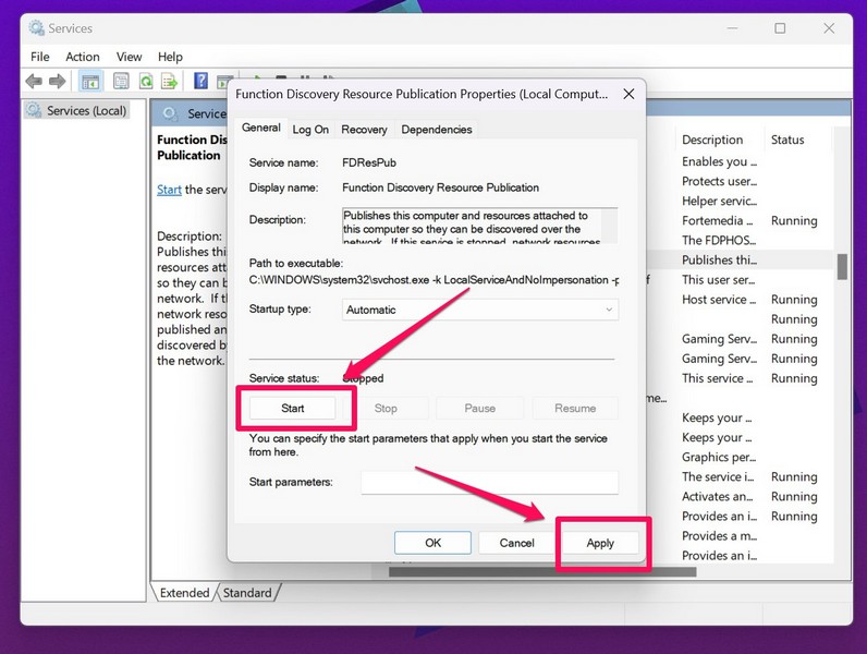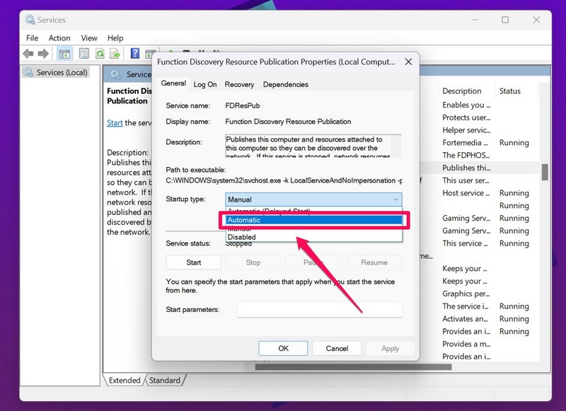 Nyt, jos yllä olevat menetelmät eivät ratkaise tiedostojen jakamista, jotka eivät toimi Windows 11 -ongelmassa laitteessasi, voit yrittää automatisoida Windows 11: n toimintojen etsintäresurssien julkaisupalvelun automatisointi.