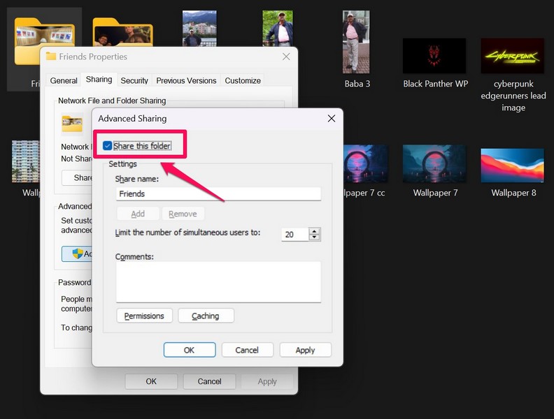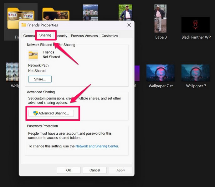 5. Käytettävä kansioiden edistynyt jakaminen Windows 11: ssä