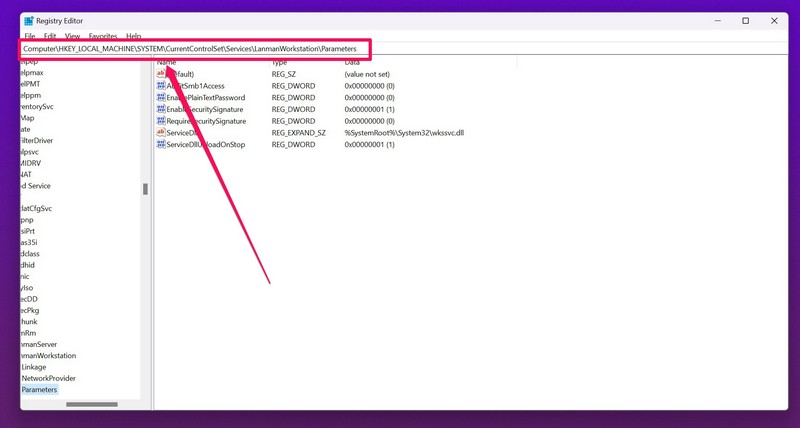 HKEY_LOCAL_MACHINESYSTEMCurrentControlSetServicesLanmanWorkstationParameters