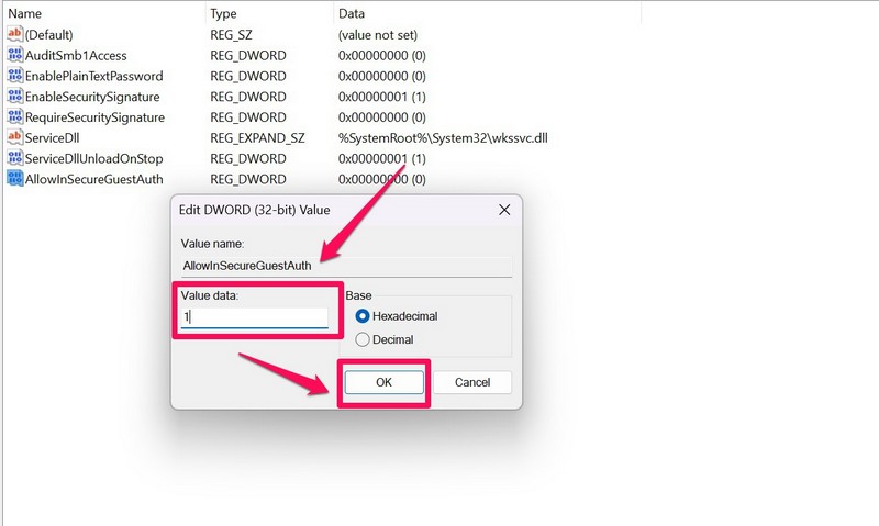 Toinen asia, jota voit kokeilla, kun tiedostojen jakaminen ei ole Windows 11: ssä, on Windows Registry Muokkaa käyttää sitä. Vaikka Windows Registry Editor -sovelluksen kanssa on riskialtista, voit käyttää sitä salliaksesi valtuutetun vieraan käyttäjän ja korjata laitteesi tiedostojen jakamisongelman. Suosittelemme kuitenkin kokeilemaan tätä menetelmää vain, jos olet kotiverkossa eikä mikään muu käyttäjä käytä kyseistä verkkoa. Kokeile nyt tätä korjausta seuraavat vaiheet alla: