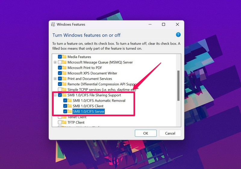 7. Ota SMB 1.0 käyttöön Windows 11: ssä