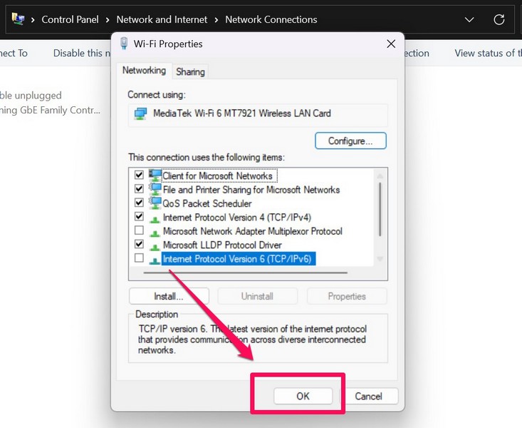 8. Poista IPv6 käytöstä Windows 11: ssä