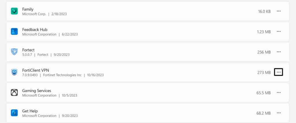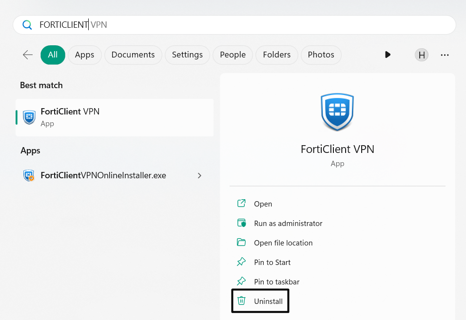 Yksi helpoimmista kiertotapoista, joiden avulla vahvistetaan Forticlient VPN, joka ei toimi Windows 11: ssä, onAsenna Forticlient VPN -sovellusPC: llä. Näin tekeminen poistaa kaikki tallennetut tiedot tietokoneeltasi ja toivottavasti myös poistaa sen ongelmat.