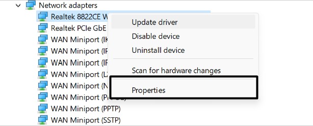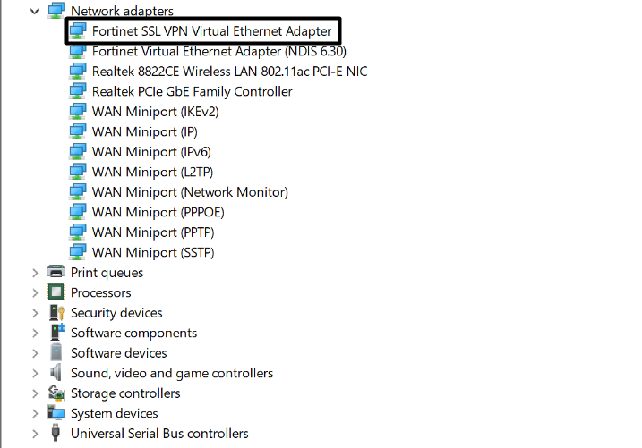 Jotkut Fortinet -yhteisön käyttäjät mainitsivat senVerkkokortin uudelleenasentaminenPC: llä korjasi ongelma heille. Näin tekeminen olisi korjannut kaikki väliaikaiset ongelmat sen kanssa. Joten tämä voi tapahtua myös tapauksessasi, ja sinun on yritettävä asentaa se uudelleen sen korjaamiseksi. Noudata alla olevia vaiheita oppiaksesi asentamaan verkkoohjain Windows 11: n uudelleen: