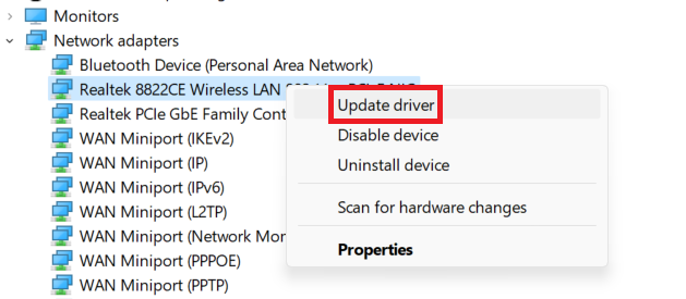 Voi olla mahdollista, että verkon ohjaimella on joitain virheitä ja häiriöitä, minkä vuoksi se ei toimi. Siinä tapauksessa harkitsePäivitetään tietokoneesi verkkoohjaimiaja tarkista, korjaako tämä ongelman. Joten noudata alla olevia vaiheita, jotta voit päivittää tietokoneen ohjaimet: