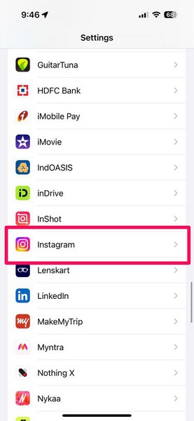 2. etsi asianomainen sovellusluettelossa. AvaammeInstagram -sovellusasetuksetTätä esittelyä varten.