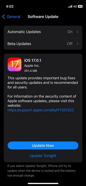 5.Kun viimeisin iOS -päivitys on valmis, napautaPäivitys nyttaiLataa ja asenna -painikePäivitysprosessin aloittaminen.