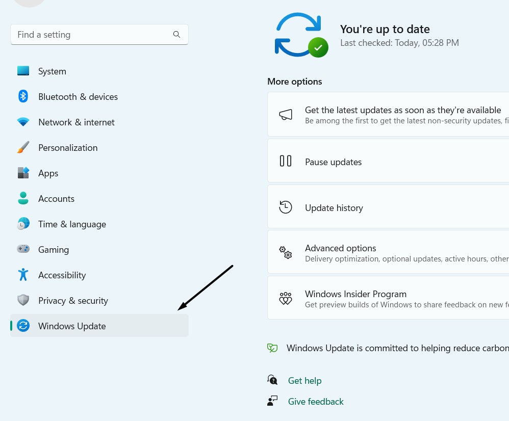 1.AvataAsetuksetWindows 11 -tietokoneellasi ja siirry kohtaanWindows Updateosa siitä.
