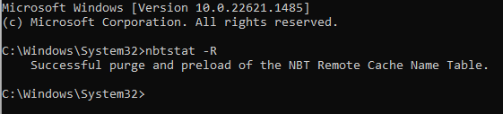 nbtstat -R3.Käynnistä tietokone uudelleen.