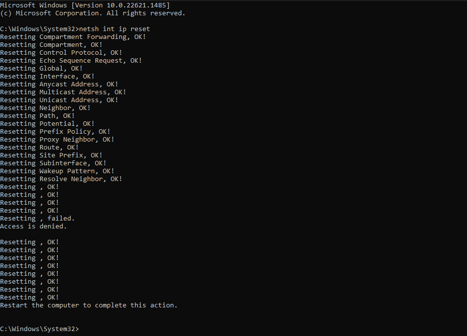 netsh int ip reset