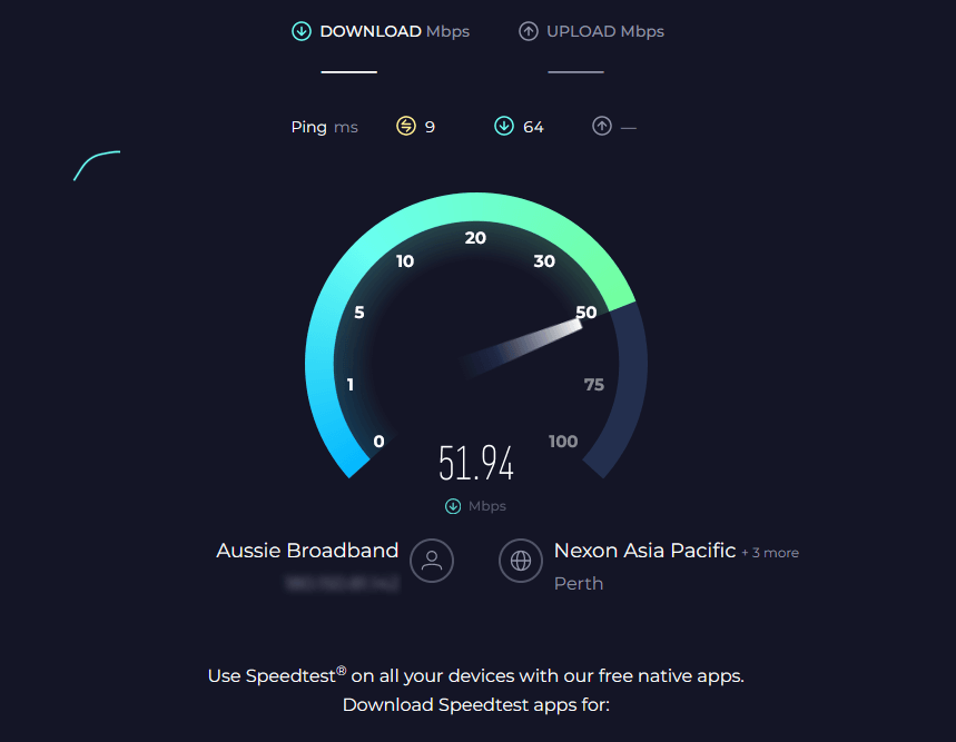 - Tarkista omasiInternetin nopeus:AvataNopeustestiselaimessasi ja painaJuokse. Jos verkkosivusto ei lataudu, internetyhteys on poikki. Jos näin on, varmista, että Internet-nopeutesi on odotusten mukainen. Muista, että tarvitset vähintään 3 Mbps latauskaistan, jotta voit katsella Hulua pienimmällä asetuksella.