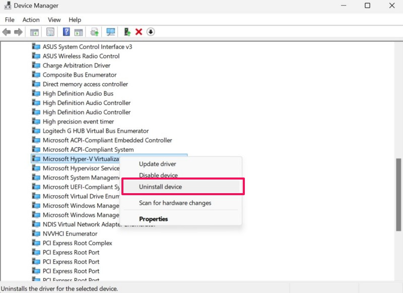 Jos päivitetään Hyper-V-virtualisointiinfrastruktuuriohjaimen ja hypervisor-huoltoohjaimen Windows 11 -tietokoneen tai kannettavan tietokoneen avulla hypervisor-virhettä, voit nyt yrittää asentaa molemmat ohjaimet uudelleen. Joten, seuraa alla olevia vaiheita asentaaksesi laitteen mainitut ohjaimet uudelleen: