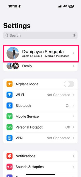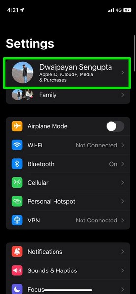 2. Napauta profiilikuvakettaYläosassa avataksesi Apple ID -sivun.