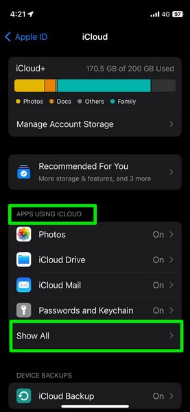 4.NapauttaaNäyttää kaikkiPainike allaSovellukset iCloudillaSeuraavan sivun osa.