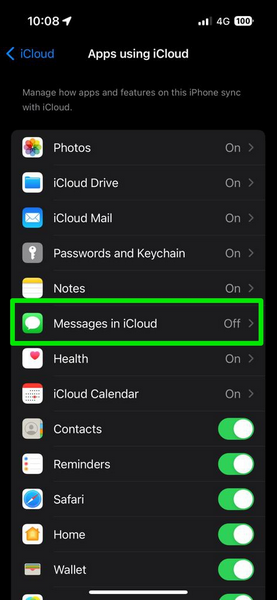 5.Täällä, napautaViestit iCloudissavaihtoehto luettelossa.
