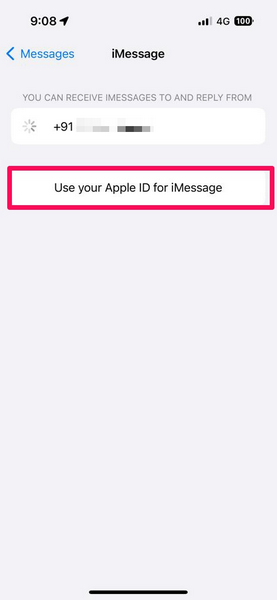 10.Napauta nytKäytä omenatunnustasi imessageenvaihtoehto samalla sivulla.