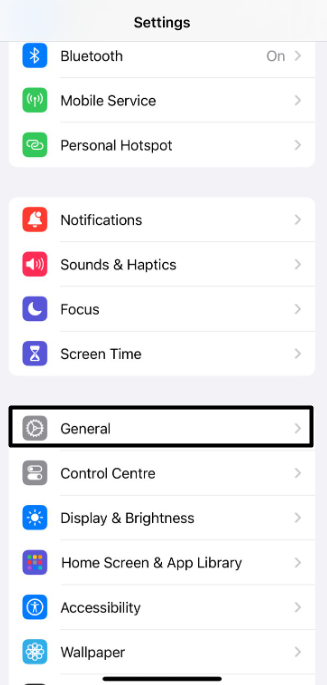 1.Päivittääksesi iOS -laitteen käynnistämälläAsetukset -sovellusja suunnataYleinensen osa.